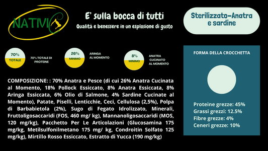 Nativic Grain Free gatto Adulto Sterilizzato Anatra con Sardine